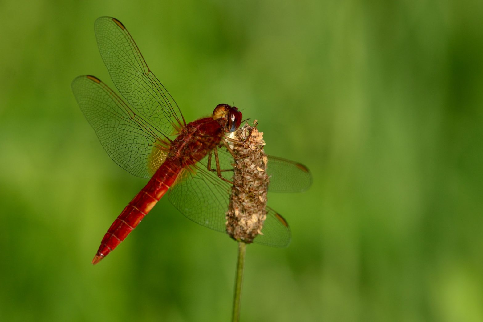 Die Feuerlibelle (Crocothemis erythraea) wird auf Grund der Farbe des Männchens so genannt. Es ist feuerrot am gesamten Körper, nur das Augenhinterteil weist eine blaue Färbung auf. Die Crocothemis erythraea kann mit anderen Gattungen der Segellibellen verwechselt werden, allerdings das Fehlen jegliche schwarz auf den Beinen ist ein sehr guter Unterscheidungsmerkmal, aber auch die rote Farbe in den Flügeladern. Diese Libelle wandert von Afrika nach Süd- und Mitteleuropa, wo sie bis in den 1990er Jahren nicht vorkam. Wahrscheinlich ist ihr Erscheinen in Europa eine Folge des Klimawandels.